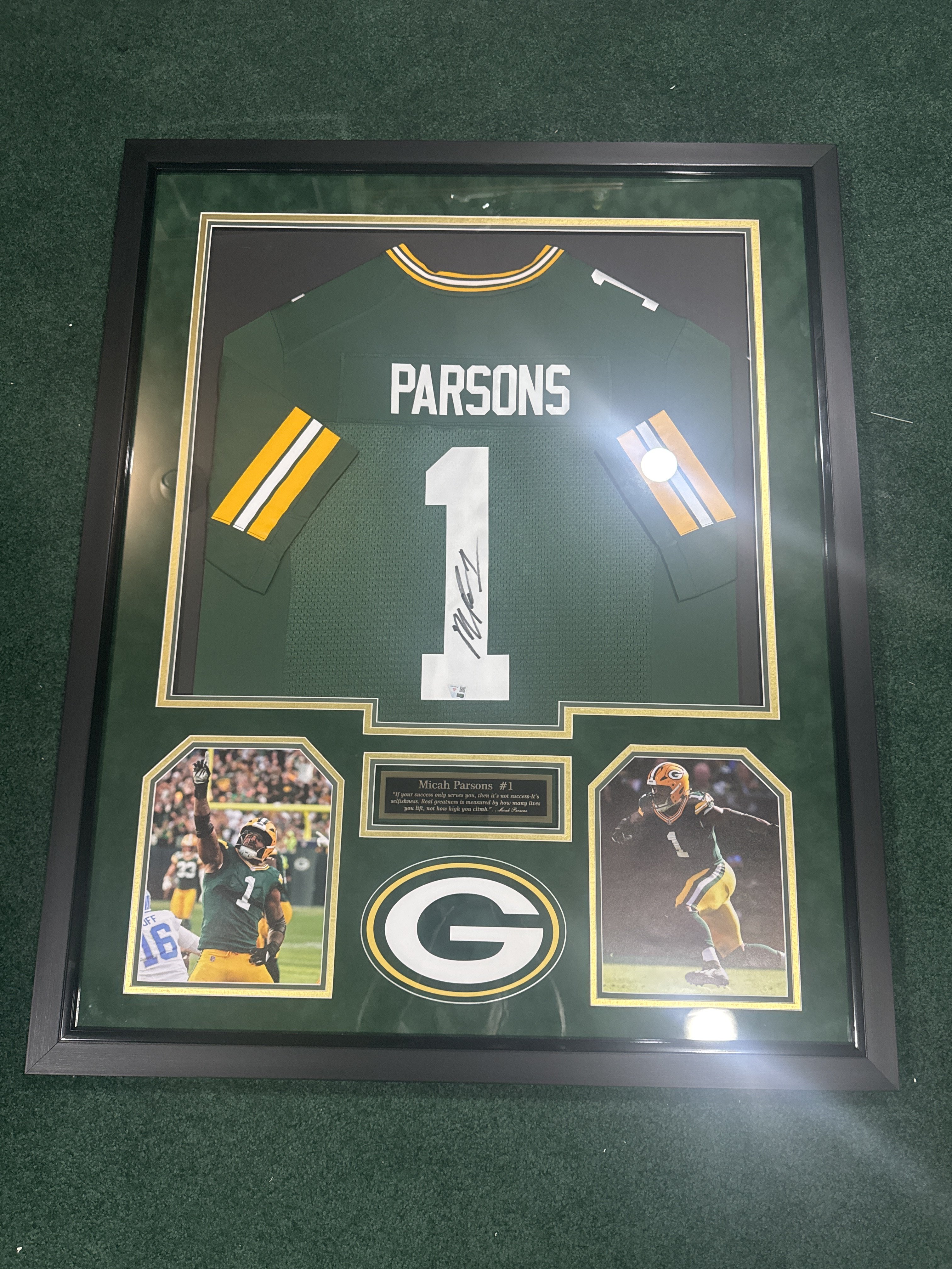 32 x 40 professionally matted and framed jersey. Includes laser cut G and 2 8 x 10s. You won’t find a nicer one anywhere!!
